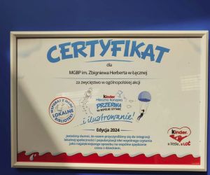 Miejsko-Gminna Biblioteka Publiczna im. Zbigniewa Herberta w Łęcznej - już po raz kolejny włączyła się w ogólnopolską akcję „Kinder Mleczna Kanapka - Przerwa na wspólne czytanie” zorganizowaną przez Kinder i wygrała nagrody. W tegorocznej edycji akcji - Biblioteka przy ul. Bożnicznej 21-wygrała stolik z krzesełkami oraz zestaw książek.