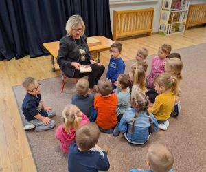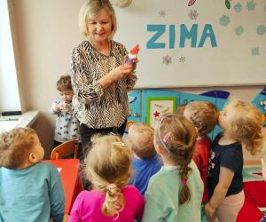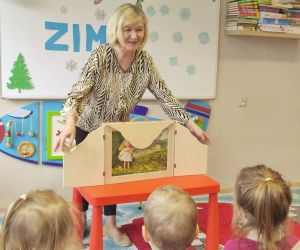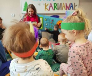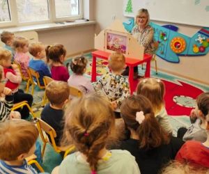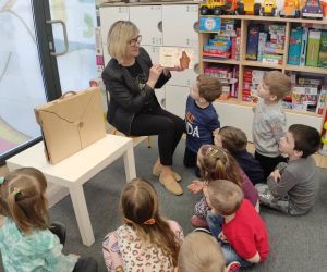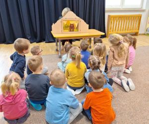 W dniu 13 lutego bibliotekarka z Oddziału dla Dzieci Biblioteki przy ul. Bożnicznej 21 odwiedziła dzieci z grupy Sówki i Biedronki w Żłobek Niepubliczny Mali Odkrywcy. Bibliotekarka przyszła z tajemniczą skrzynką, w której mieściły się Ilustrowane opowieści teatrzyku Kamishibai.