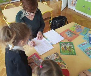 W ramach akcji „Koszyk z książkami” dzieci samodzielnie wybrały sobie książki i wypożyczyły do domu.