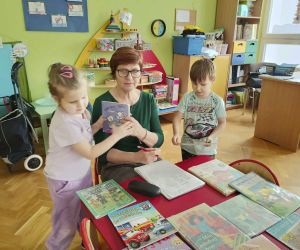 W ramach akcji „ Koszyk z książkami” przedszkolaki samodzielnie wybrały sobie książki i wypożyczyły do domu.