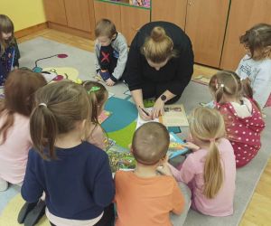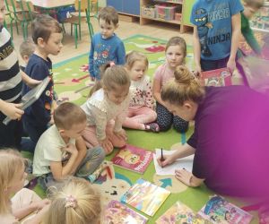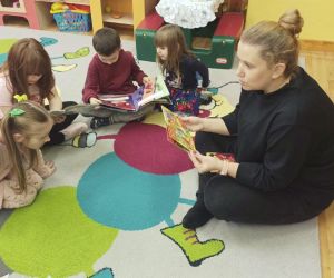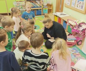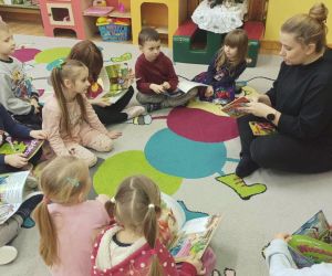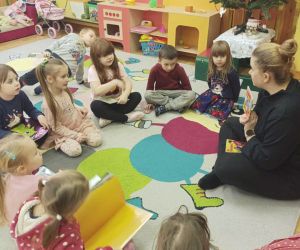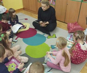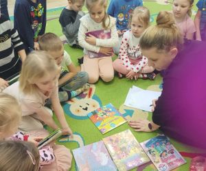Gdy za oknem padał śnieg i mróz szczypał w uszy Bibliotekarka Ola z Fili nr 1 odwiedziła dzieci z grupy „Misie” w Przedszkolu Publicznym nr 2. Przedszkolaki wysłuchały utworu Aleksandra Fredry pt. „Dwa koguty” oraz wypożyczyły książeczki z ulubionymi bohaterami.