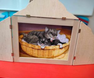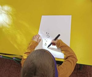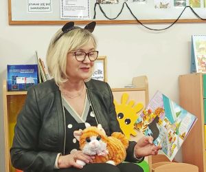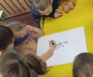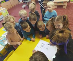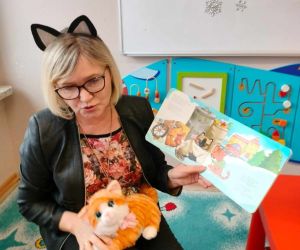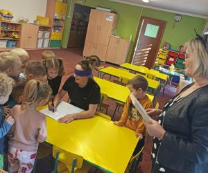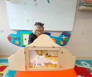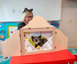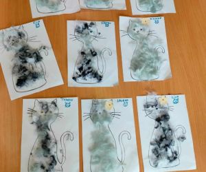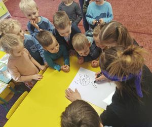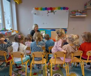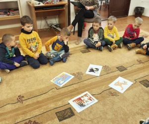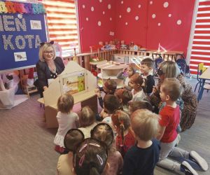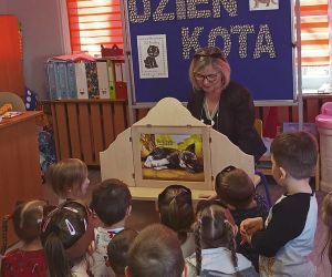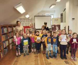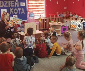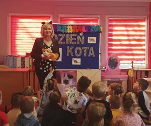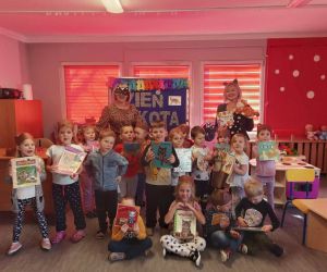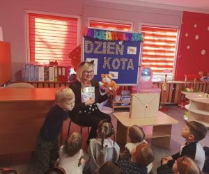 Wybór tematyki spotkania nie był przypadkowy, bowiem kilka dni temu świętowaliśmy Dzień Kota. Podczas wizyty dzieci wysłuchały książki autorstwa Wiesława Drabika pt. "Dzień Kota" oraz bajki Kamishibai pt. "Kotka Psotka". Na zakończenie przedszkolaki wykonały pracę plastyczną z kotkiem- bohaterem dzisiejszego spotkania.