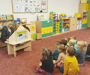 W dniu 20 lutego bibliotekarka z Oddziału dla Dzieci Biblioteki przy ul. Bożnicznej 21 spotkała się z dziećmi z grupy Sówki i Biedronki w Żłobku Niepublicznym Mali Odkrywcy w Łęcznej na głośnym czytaniu.
