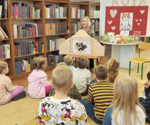 17 lutego obchodzimy Światowy Dzień Kota. Obchodzenie tego święta w Bibliotece przy ul. Bożnicznej 21, to już kilkunastoletnia tradycja. Z tej okazji , w dniu 19 lutego 2024 r., spotkaliśmy się z przedszkolakami z gryp: „Krasnoludki” oraz „Słoneczka” z Przedszkola Publicznego nr 1 w Łęcznej na zajęciach edukacyjnych pn. „Aaa kotki dwa”. Podczas spotkania dzieci wysłuchały książki autorstwa Wiesława Drabika pt. "Dzień Kota" oraz bajki Kamishibai pt. "Kotka Psotka". Przedszkolaki brały udział w zabawie polegającej na szukaniu ukrytych myszek, rysowały, z zawiązanymi oczami, kota według czytanego wierszyka, słuchały piosenek oraz odgadywały, jakie to bajkowe koty uciekły z bajek. Na zakończenie spotkania dzieci otrzymały kolorowankę z kotem- bohaterem spotkania.