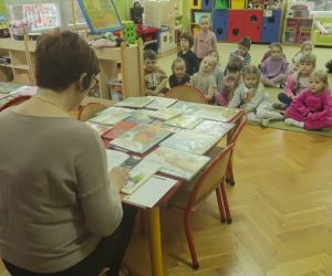 W dniu 03 stycznia bibliotekarka z Filii nr 2 odwiedziła dzieci z grupy” Motylki” z Przedszkola Publicznego nr 4 i przeczytała dzieciom wiersz pt.” Styczeń” z książki „Cztery pory roku – wiersze dla dzieci” oraz zagadki związane z zimą. W ramach akcji „Koszyk z książkami” dzieci samodzielnie wybrały sobie książki i wypożyczyły do domu. Miłą niespodzianką było wręczenie przez dzieci podziękowania dla bibliotekarki.