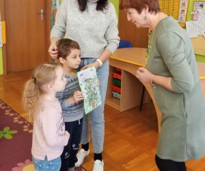 Na zakończenie miłego spotkania bibliotekarka otrzymała własnoręcznie przygotowaną kartkę z życzeniami z okazji zbliżających się Świat Bożego Narodzenia i Nowego roku. Dziękujemy Pani Ewie i dzieciom za miłe spotkanie.