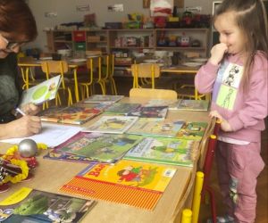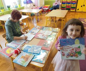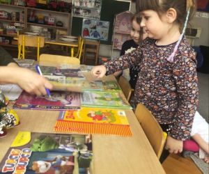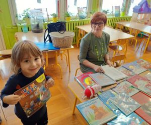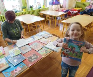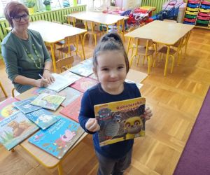 Spotkanie odbyło się w ramach akcji „Koszyk z książkami”. Po wysłuchaniu opowieści dzieci samodzielnie wybrały sobie i wypożyczyły książki do przeczytania w domu.