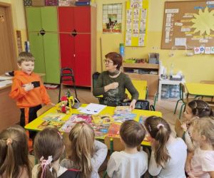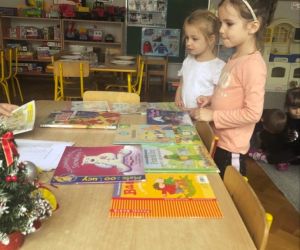 Niedawno były Mikołajki i z tej okazji dzieci wysłuchały opowieści Wiesława Drabika pt.: „Wielka zadyma z Mikołajem”. Gdy w ciepłym domu Agatka spogląda przez okno z komina wypadł Mikołaj i bezdomny kot. Agatka miała szczęście, że mogła wybrać sobie prezent. Jaki? Dzieci dowiedziały po wysłuchaniu tej zabawnej historii. Morał z tej opowieści jest taki, że potrzebujemy siebie nawzajem!