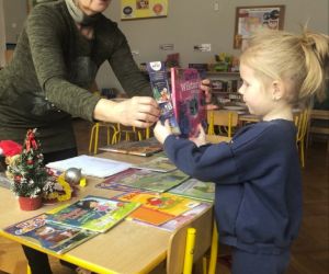 12 grudnia bibliotekarka z Filii nr 2 po raz pierwszy spotkała się z dziećmi z grupy „Misie” w Przedszkolu nr 4 w Łęcznej na głośnym czytaniu. Jako, że Święta Bożego Narodzenia tuż, tuż dzieci wysłuchały opowiadania Elżbiety Safarzyńskiej pt. : „Ozdoby choinkowe”. Przedszkolaki dowiedziały się , że własnoręcznie wykonane aniołki i bałwanki ,papierowe gwiazdki i piernikowe ludziki są najpiękniejsze bo w ich przygotowanie włożone jest wiele serca. Dzieci dowiedziały się o Wigilii, o ozdobach choinkowych, opowiadały o ubieraniu choinki i pieczeniu pierniczków. Odgadywały zagadki związane z zimą. Było to pierwsze spotkanie w ramach akcji „Koszyk z książkami”, dzieci samodzielnie wybrały sobie książki i wypożyczyły do domu. Każde dziecko otrzymało w prezencie zakładkę do książki i cukierka.