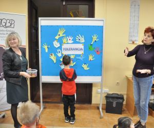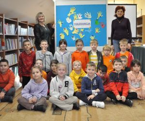 Termin i temat spotkania nie był przypadkowy. Obchodzony w dniu dzisiejszym Dzień Tolerancji to doskonała okazja, aby porozmawiać o inności i akceptacji siebie. Celem zajęć było wyjaśnienie dzieciom, że bycie innym nie oznacza bycie kimś gorszym. Uczniowie rozwiązywali krzyżówkę z hasłem: tolerancja, słuchali piosenek i oglądali film o tolerancji. Dużą atrakcją dla uczestników spotkania było oglądanie bajki pt. ”Brzydkie kaczątko” na podstawie baśni H.Ch. Andersena, z wykorzystaniem teatrzyku kamishibai. „KAMISHIBAI” (jap. 紙芝居) to wywodzący się z Japonii teatr ilustracji/obrazu. Dosłownie słowo „kamishibai” oznacza sztukę teatralną przedstawianą na papierze (jap.”kami” – papier, „shibai” – sztuka). Jest to technika opowiadania historii z wykorzystaniem ilustrowanych papierowych plansz, które umieszczone są w drewnianym parawanie nazywanym butai (jap. 舞台 – scena). Parawan składa się z ramki, miejsca do umieszczania planszy oraz z dwóch ruchomych okiennic.Tajemniczy teatrzyk był dla dzieci niespodzianką, którą przyjęły z ciekawością i zainteresowaniem.