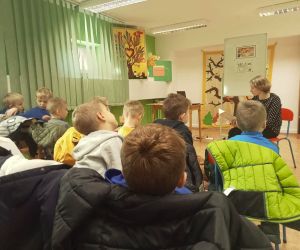 7 listopada 2023 r. Filię nr 3 odwiedziły dzieci z klasy 0 „d” ze Szkoły Podstawowej nr 4 w Łęcznej. Uczniowie wzięli udział w lekcji bibliotecznej i zwiedzili wystawę prac pt.: „Odkrywamy młode talenty. Mali goście zapoznali się także z pracą biblioteki i kącikiem dziecięcym. Podczas spotkania dzieci poznawały książki o jesieni, wysłuchały jesiennych wierszy i opowiadań. Wzięły aktywnie udział w muzycznych zgadywankach i układały wyrazy z jesiennymi hasłami. Wielką radość sprawiło dzieciom rozwiązywanie krzyżówki i zagadek. Podczas zabawy klasa rywalizowała w dwóch grupach „Jeżyki” i „Wiewiórki”, obydwie wykazały się dużą wiedzą i aktywnością. Pani Ewa opowiedziała też uczestnikom o ważnych świętach, które obchodzimy jesienią. Dziękujemy za odwiedziny i do zobaczenie w bibliotece.