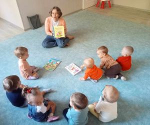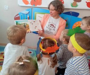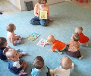 W piękny jesienny poranek 27 września 2023 r. pani Ewa z Filii nr 3 odwiedziła dzieci ze Żłobka „Mali Odkrywcy”. Na zaproszenie pani Agnieszki z grupy Sówki i wychowawców grup Kangurki i Biedronki pani Ewa czytała dzieciom wiersze i fragmenty książek o jesieni. Mali słuchacze poznali piękny wiersz Józefa Czechowicza pt.: „Jesień” i wysłuchali fragmentów książek „Kubuś Puchatek i cztery pory roku” W. Disneya oraz „Zwierzęta lasu” W. Drabika. Dzieci wzięły udział w zgadywance o jesiennych zwierzętach. Pani Ewa nauczyła też uczestników piosenki o jesieni. Następnie wszyscy wspólnie pokazywali jak „wieje wiatr i spadają jesienne liście”. Dzieci mogły obejrzeć i wypożyczyć książki o jesieni.