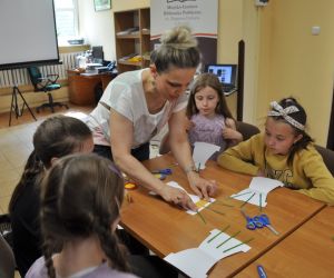 26 maja 2023 r w Bibliotece Głównej przy ul. Bożnicznej gościliśmy uczniów klasy 4 c ze Szkoły Podstawowej Nr 2 w Łęcznej wraz z wychowawczynią. Uczniowie wzięli udział w warsztatach, których tematem był Dzień Matki. Podczas zajęć dzieci szukały słów, które kojarzą się z mamą i uzupełniały nimi tablicę tytułową. Zapoznały się z historią tego święta i obejrzały film o Dniu Matki. Bibliotekarka przeczytała jedno z opowiadań Renaty Piątkowskiej z książki pt. „Po prostu mama”. Uczniowie wysłuchali piosenki dla mamy, a następnie z przygotowanych materiałów wykonali kolorowe kartki dla swoich mam w formie papierowych bukietów. Mamy nadzieję, że wykonane w Bibliotece prace sprawią mamom wiele radości.