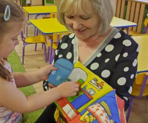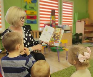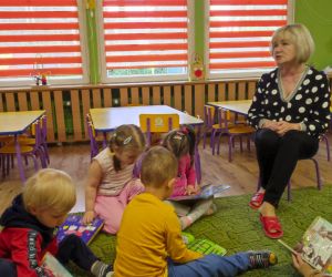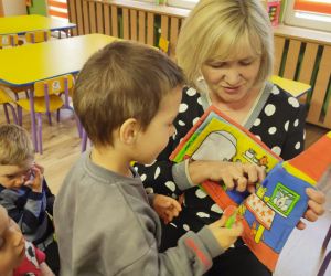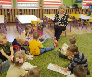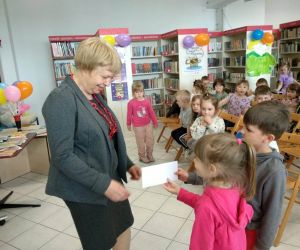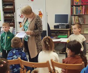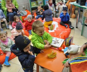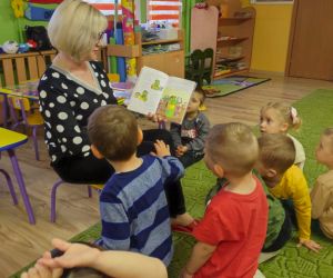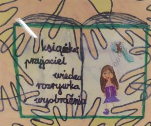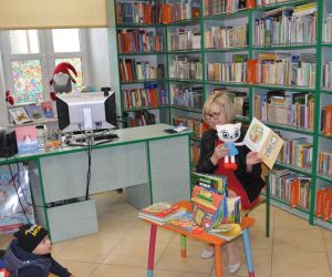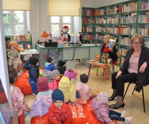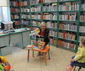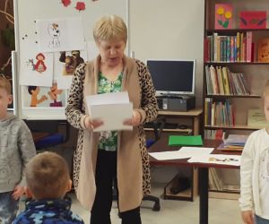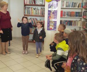 Prowadząca spotkanie przygotowała dla dzieci zgadywanki, opowiedziała bajkę, i przeczytała wiersz autorstwa Anny Kamieńskiej pt. „Książka”. W dalszej części przedszkolaki miały za zadanie odgadnąć m.in. postaci z bajek na podstawie fotografii i zgaduj-zgaduli. Dobrze poradziły sobie z odgadywaniem tytułów książek i bohaterów. W trakcie spotkania nie zabrakło również zabaw ruchowych „Ukryta książka” (wersja zabawy „Ciepło-zimno”) i konkurencji „Z książką na głowie”, w których dzieci wykazały dużo entuzjazmu i zapału.