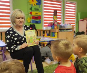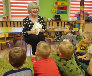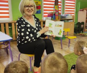 W dniu 18 maja 2023 r. odbyło się spotkanie z cyklu „Czwartkowy poranek z książką”. To cykl głośnego czytania organizowany przez Oddział dla Dzieci MGBP, skierowany do przedszkolaków z Przedszkola nr 1, w ramach współpracy obydwu placówek. Celem takich spotkań jest rozwijanie zainteresowań czytelniczych u dzieci. Podczas dzisiejszego „Czwartkowego poranka z książką” dzieci wysłuchały książeczki pt. „Franklin i książka z biblioteki”. Wybór książki na czytanie nie był przypadkowy, ponieważ w tym tygodniu dzieci poznają różne zawody. Na dzisiejszym spotkaniu przedszkolaki dzieci poznały zawód bibliotekarza, który „ na półkach książek ma bez liku i dba o te książki oraz Czytelników”. „Skrzaty” dowiedziały się o wyjątkowym miejscu, skąd bibliotekarka przynosi książki do Przedszkola i wypożycza w ramach akcji „Koszyk z książkami”. Podczas wizyty w przedszkolu bibliotekarka wprowadziła dzieci także w tematykę poszanowania książek recytując wiersz J. Huszczy pt.: „Skarga książki”. Ogromnym zainteresowaniem cieszyła się wspólna zabawę z książką pt. „W gospodarstwie” Na zakończenie każdy przedszkolak miał okazję wybrać sobie i wypożyczyć do domu książeczkę. Mamy nadzieję, że dzisiejsze spotkanie przybliżyło dzieciom pracę bibliotekarza.