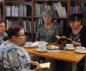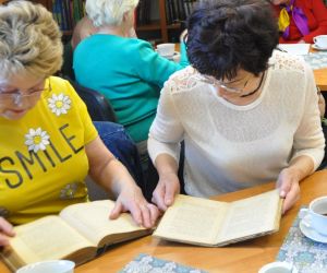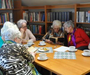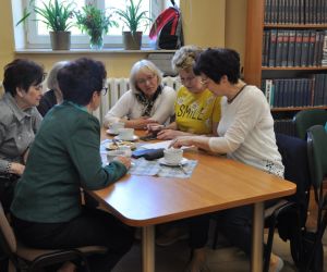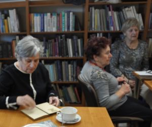 Na początku seniorzy obejrzeli prezentację „10 lat Klubu e-Senior”, następnie wypełniali quiz o bibliotece. W trakcie rozmowy o historii placówki wspominali o tym, jak kiedyś wyglądała biblioteka, gdzie się mieściła, jakie posiadała zbiory. Zainteresowanie zbudziły najstarsze książki znajdujące się w Bibliotece Głównej. Dużo śmiechu wywołały anegdoty o bibliotece i zabawa w kalambury – odgadywanie tytułów książek.
