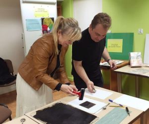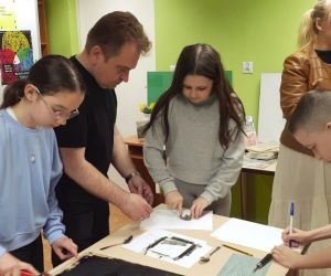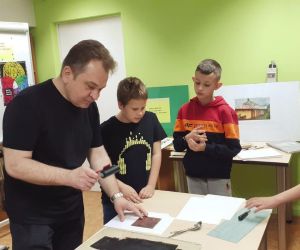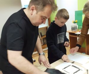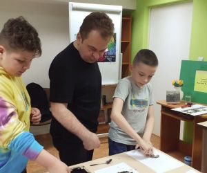 12 maja 2023 r. Filia nr 3 z okazji „Tygodnia Bibliotek” zorganizowała warsztaty dla uczniów, które poprowadził Pan Paweł Brodzisz utalentowany artysta plastyk i wiceprezes Zarządu Towarzystwa Przyjaciół Ziemi Łęczyńskiej. W spotkaniu wzięli udział uczniowie klasy III c ze Szkoły podstawowej nr 4 w Łęcznej z wychowawczynią Anetą Zabłocką. Na początku spotkania bibliotekarka zaprezentowała dzieciom najciekawsze zabytki Łęcznej.Następnie pan Paweł Brodzisz w mistrzowski sposób poprowadził warsztaty tworzenia prac metodą linorytu. Nasz gość opowiedział również uczestnikom o swoich wspomnieniach, doświadczeniach i ciekawych zabytkach naszego miasta. Uczniowie poznali jak wykonuje się prace metodą linorytu i każdy mógł samodzielnie wspólnie z artystą wykonać swój linoryt. Dzieci wykonywały pracę odbijaną na matrycy, wykonanej na przykładzie zdjęcia zabytkowej kapliczki znajdującej się przy cmentarzu parafialnym w Łęcznej. Uczestnicy wykorzystywali specjalną matrycę, wałki i farbę wodną udostępnioną przez naszego gościa. Mogły też własnoręcznie dłutkiem spróbować wykonać wzór matrycy. Uczniowie zainspirowani talentem i pokazem artysty chętnie, z fascynacją wykonywali swoje dzieła. Dziękujemy uczestnikom za udział i Panu Pawłowi za wspaniałe warsztaty i ciekawą lekcję o zabytkach Łęcznej.