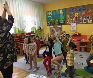 Po wysłuchaniu opowiadania razem wykonaliśmy kilka ćwiczeń. Była np. pozycja góry i drzewa. Dzieci były bardzo zadowolone z takiej formy zajęć.