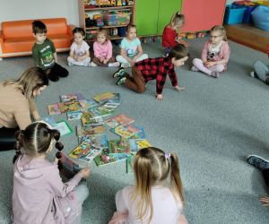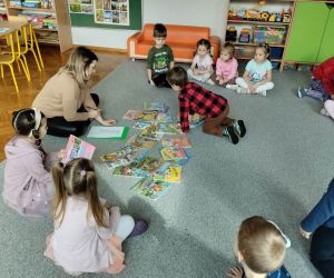 W ramach akcji „Koszyk z książkami” 22 marca odbyło się spotkanie z grupą „Wiewiórki”. Podczas wizyty, w nawiązaniu do minionego Światowego Dnia Poezji, przedszkolaki wysłuchały wiersza Juliana Tuwima „Słoń Trąbalski”, który przeczytała bibliotekarka z Filii nr 2, ul. Obrońców Pokoju 1. Na zakończenie spotkania wszystkie dzieci wypożyczyły książeczki.