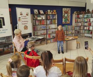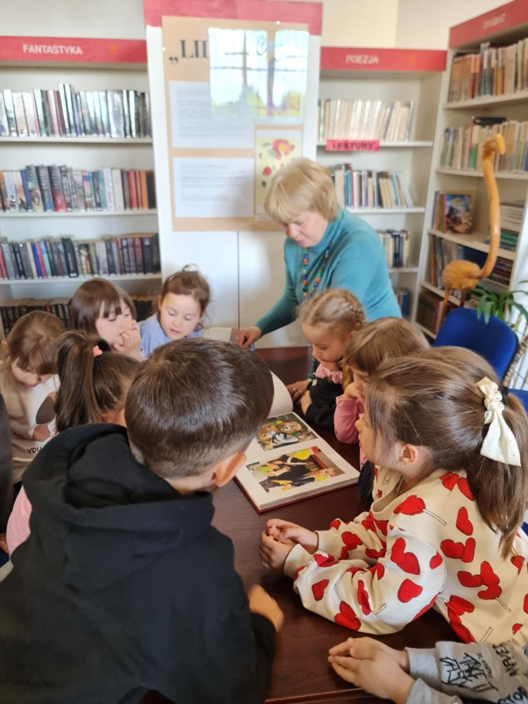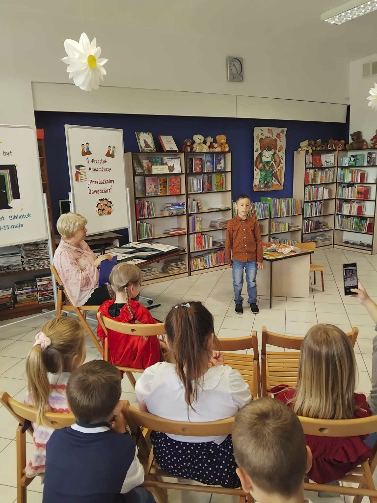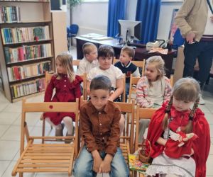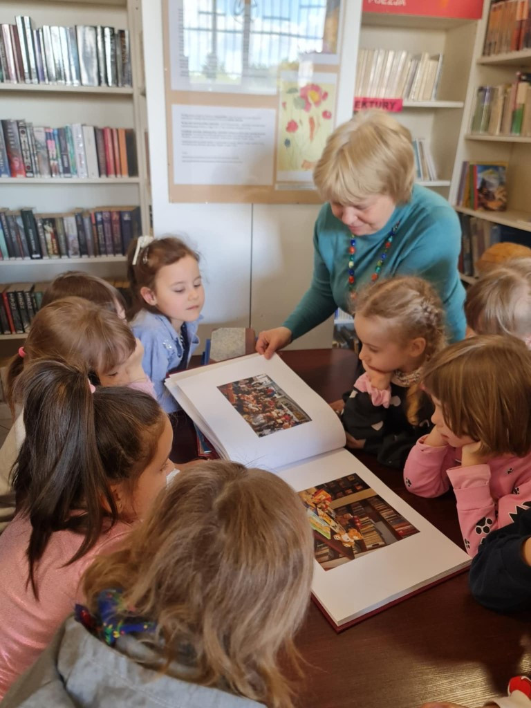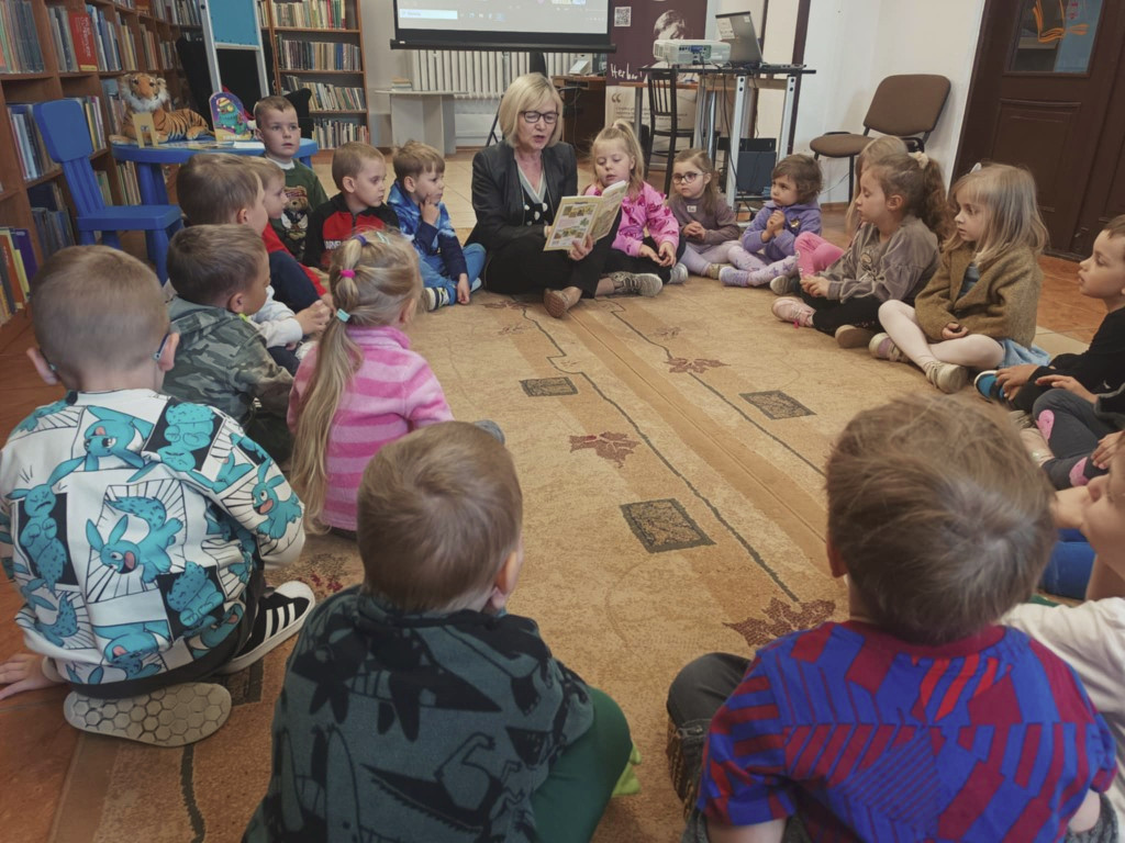 Nie zabrakło też zabawy – przedszkolaki uczestniczyły w ruchowej aktywności z przechodzeniem przez tunel z książką. Dzieci słuchały wiersza "Tygrys w bibliotece" i wesołych piosenek o książkach i bibliotece.