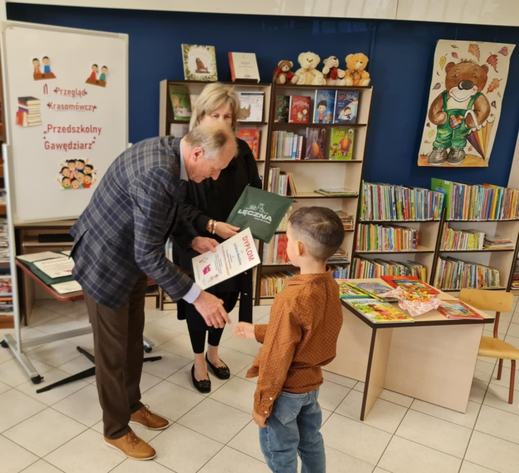 W dniu 12 maja w Filii nr 2 odbył się II Przegląd Krasomówczy pn. „Przedszkolny Gawędziarz”, w którym udział wzięły dzieci z Przedszkola Publicznego nr 3 i 4 w Łęcznej. Przegląd zorganizowany został z okazji obchodów Ogólnopolskiego „Tygodnia Bibliotek”, Przedszkolaki miały za zadanie opowiedzieć ulubioną bajkę, którą czytali im dorośli np. rodzice i dziadkowie. Wśród opowiadanych bajek znalazła się ta o „Czerwonym Kapturku”, „Roszpunce”, „Trzech małych świnkach”, „Wilku i siedmiu koźlątkach ” i inne. Dzieci pięknie się zaprezentowały. Wykazały się dużą znajomością bajek, oryginalnym słownictwem, wyobraźnią i kreatywnością. Były świetnie przygotowane i udowodniły, że posiadają umiejętność występowania i zaprezentowania się przed publicznością. Każde z nich zasługuje na miano Przedszkolnego Gawędziarza. Po wysłuchaniu wszystkich wystąpień, przedszkolakom wręczono dyplomy uczestnictwa, książeczki ufundowane przez MGBP oraz gadżety przekazane przez Urząd Miejski w Łęcznej. Panie z przedszkoli otrzymały podziękowania za pomoc i współpracę w realizacji Przeglądu. Na koniec spotkania Bibliotekarki otrzymały życzenia od Krzysztofa Matczuka Przewodniczącego Rady Miejskiej oraz Dyrekcji przedszkoli. Życzenia złożone zostały na ręce Moniki Mazurkiewicz Dyrektora Miejsko-Gminnej Biblioteki Publicznej im .Zbigniewa Herberta w Łęcznej.