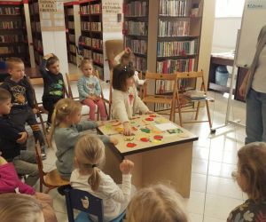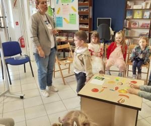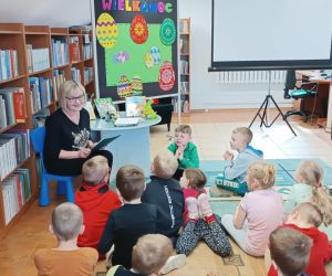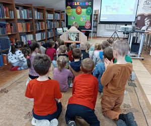 Dzisiaj naszą bibliotekę odwiedziła klasa II B ze Szkoły Podstawowej nr 4. Podczas zajęć dzieci miały okazję poznać tradycje związane z przygotowaniem koszyczka wielkanocnego. Dowiedziały się, jakie produkty powinny się w nim znaleźć, a także jakie mają one symboliczne znaczenie. Uczniowie losowali także pytania a za prawidłową odpowiedź dostawali słodką niespodziankę od Wielkanocnego Zajączka.