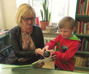 Przedszkolaki dowiedziały się też, jak wyglądała praca bibliotekarza przed komputeryzacją i jak wygląda teraz. Zobaczyły katalog z magicznymi szufladkami pełnymi kart, a następnie miały możliwość wypożyczyć sobie samodzielnie książkę używając czytnika kodów kreskowych.