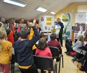 Dzieci żywo reagowały na czytane przez autora książki. Odpowiadały na zadawane przez pisarza pytania. Te najbardziej aktywne dostały naklejki i książeczki. Wszystkie dzieci mogły kupić książkę z autografem Wiesława Drabika.