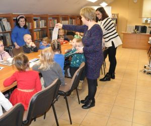Prowadząca spotkanie opowiedziała przedszkolakom jak dawniej wyglądała Łęczna. Dzieci obejrzały fotografie, na których zamieszczone były stare budynki, domy mieszkalne, a także zabytki, które warto zobaczyć. Dowiedziały się też o Dolinie Dinozaurów, którą można odwiedzić, wybierając się na spacer z rodziną. Wysłuchały „Legendy o łęczyńskim herbie” autorstwa Wojciecha Próchniewicza. Przedszkolaki żywo reagowały oglądając zdjęcia, zadawały pytania i zadziwiały swoją spostrzegawczością i bystrością.