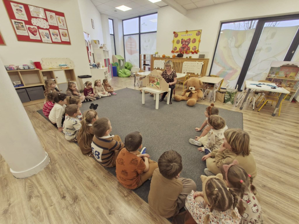 Dzieci z ogromnym zainteresowaniem śledziły przygody bohaterów, żywo reagując na wydarzenia z kart historii. Pokaz idealnie wpisał się w klimat Dnia Pluszowego Misia, który obchodziliśmy 25 listopada. To było wyjątkowe, pełne uśmiechów i emocji spotkanie!