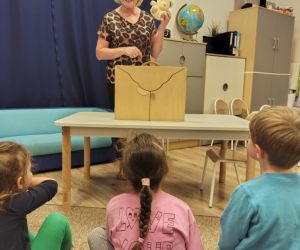 Pani Basia przywiozła ze sobą Teatrzyk Kamishibai, dzięki któremu najmłodsi mogli obejrzeć dwie piękne opowieści: „Złotowłosą i trzy misie” oraz „Mój przyjaciel Pluszowy Miś”.