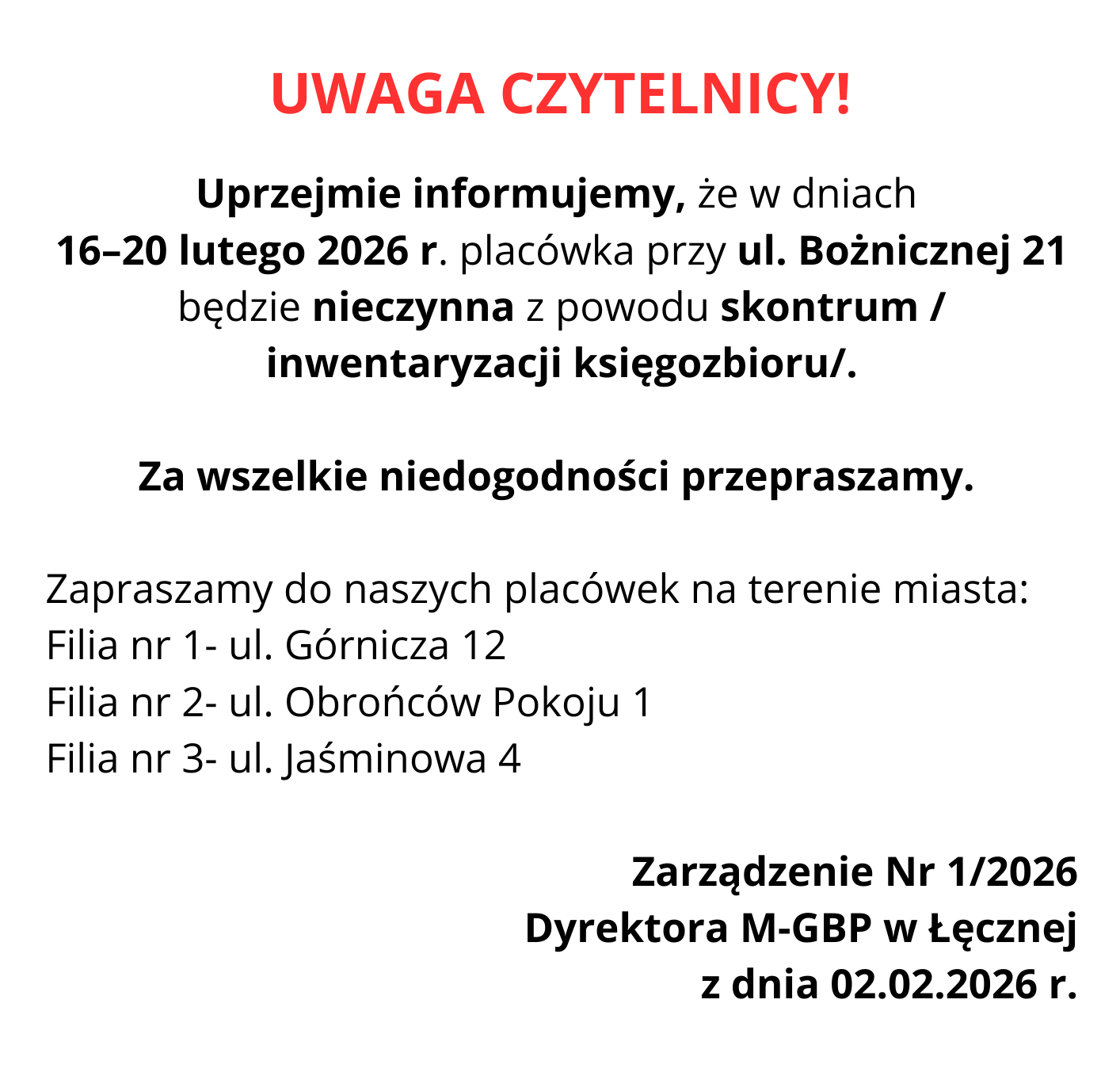 Jako że Filia nr 1 podejmuje wyzwania czytelnicze razem z portalem lubimyczytac.pl - największym i najbardziej prestiżowym serwisem czytelniczym w Polsce - w styczniu sięgamy po książki nominowane w plebiscycie tegoż portalu na najlepszą książkę roku 2025.To doskonała okazja, by zapoznać się z aktualnymi trendami literackimi oraz tytułami docenionymi przez czytelników i krytyków. Zapraszamy naszych czytelników do lektury i zachęcamy do dzielenia się swoimi opiniami po przeczytaniu.