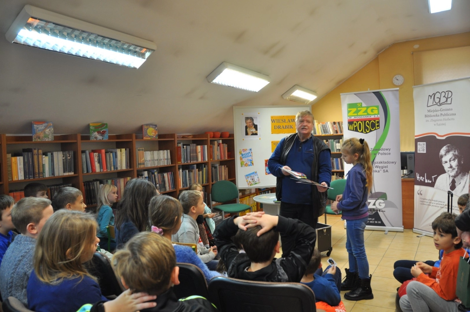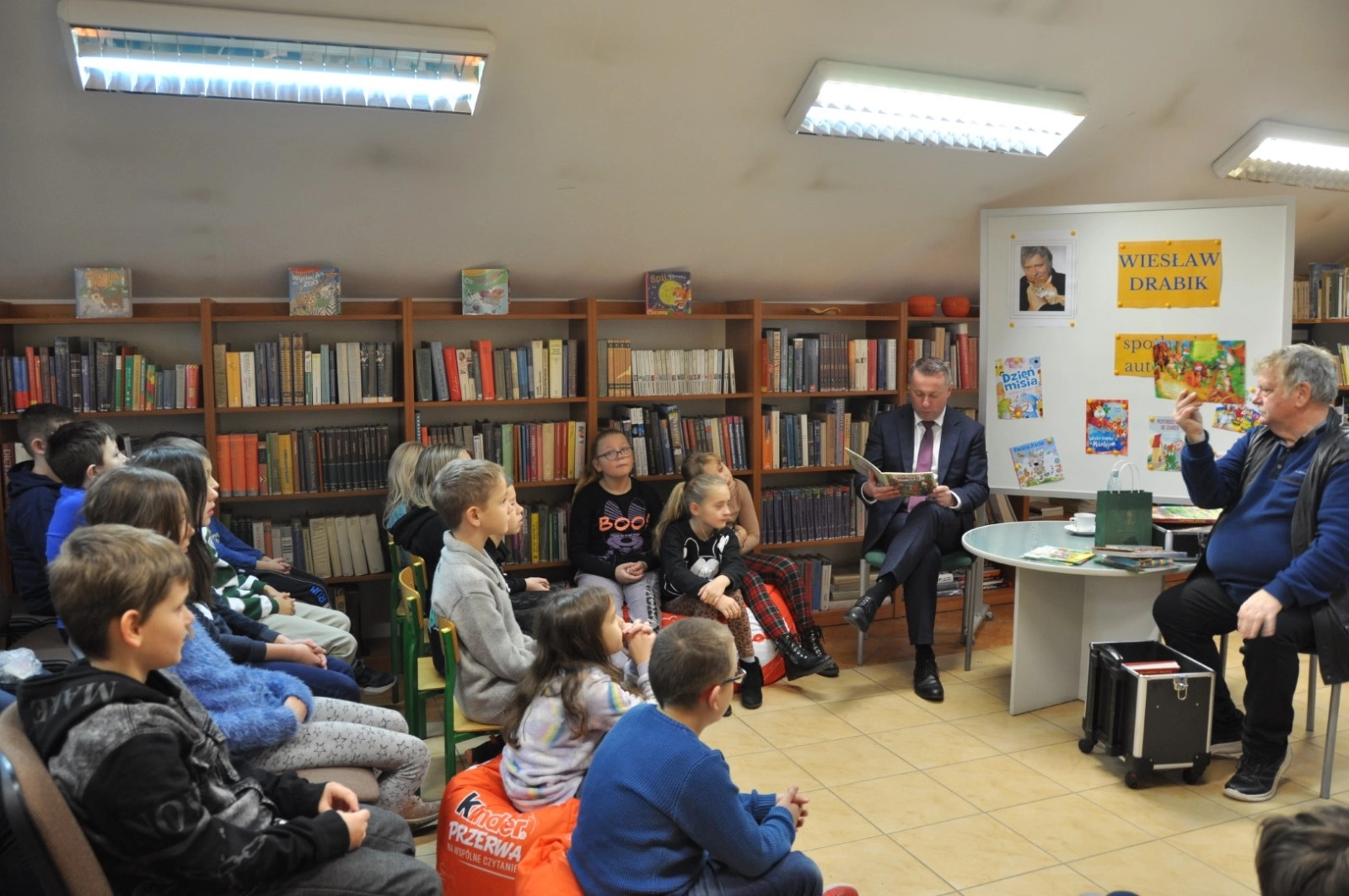 Podczas spotkania Leszek Włodarski Burmistrz Łęcznej przeczytał książeczkę autora pt. „Nowy domek wiewiórki”. Wiesław Drabik opowiedział jak rozpoczął przygodę z pisaniem, o czym był pierwszy wierszyk napisany dla córki, a następnie wprowadził w świat pięknie wydanych i napisanych książeczek. Czytał i opowiadał o swoich książkach np. z serii „Na pomoc!”, „Zwierzaczkowo” i o tych do pokolorowania. Każda z nich oprócz ważnego przesłania, uczącego najmłodszych jak należy zachować się w różnych sytuacjach, zawiera mnóstwo przyjaznych, zabawnych treści.