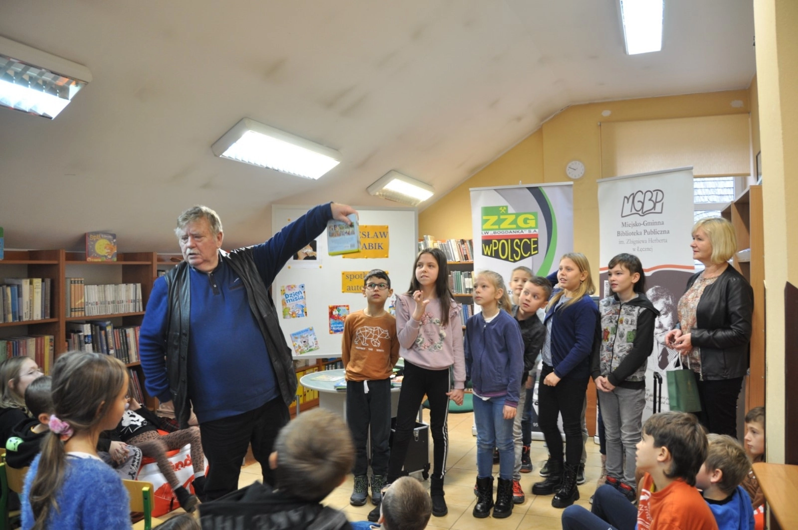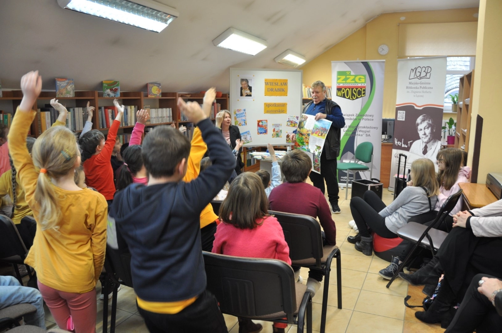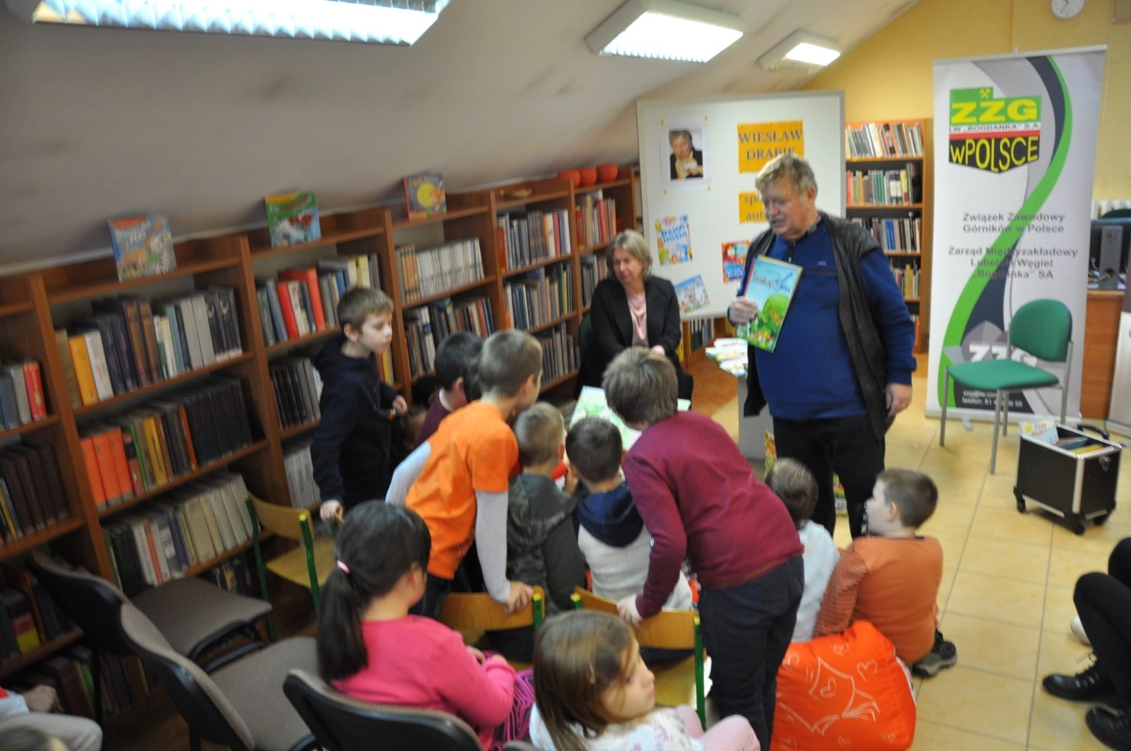 Dzieci żywo reagowały na czytane przez autora książki. Odpowiadały na zadawane przez pisarza pytania. Te najbardziej aktywne dostały naklejki i książeczki. Wszystkie dzieci mogły kupić książkę z autografem Wiesława Drabika.