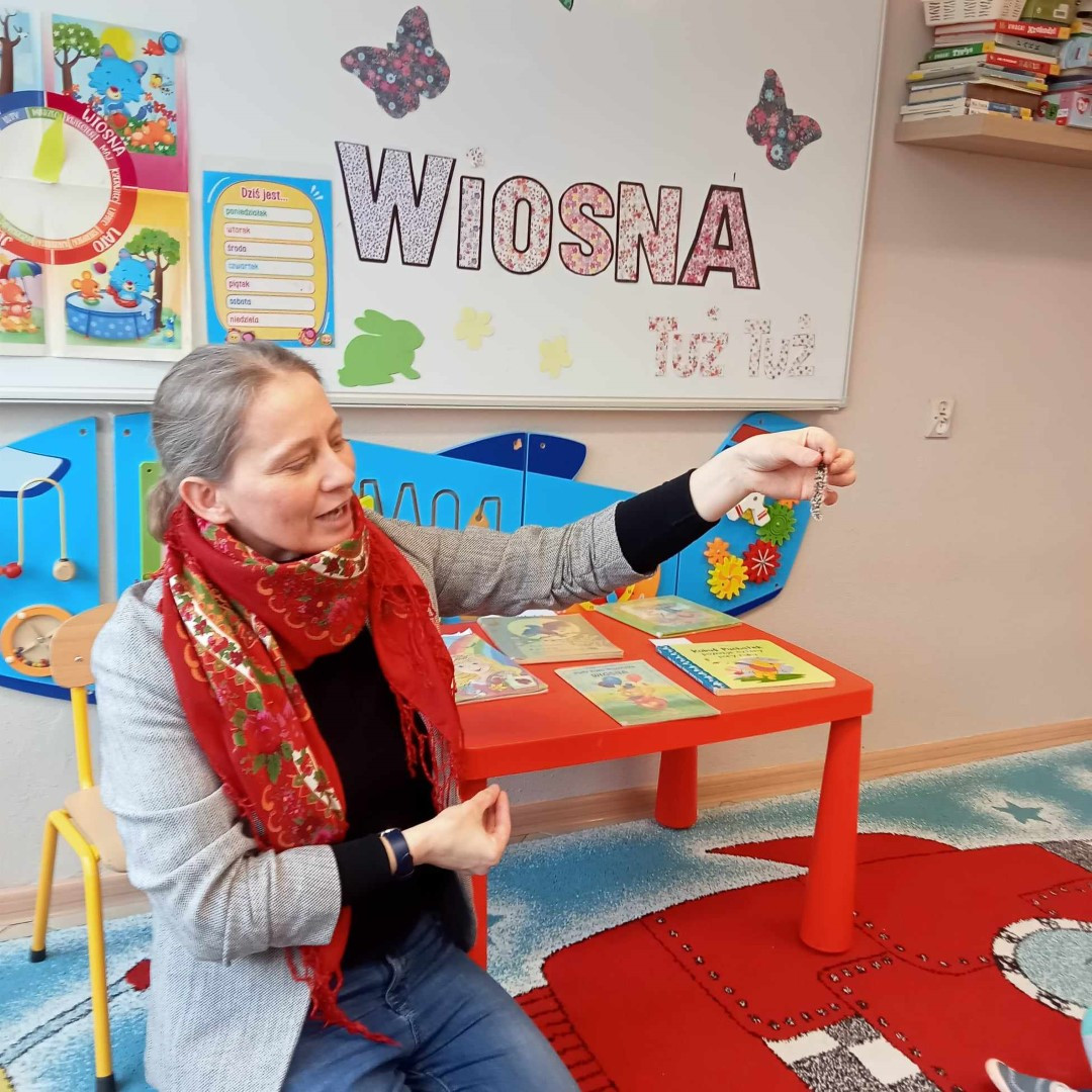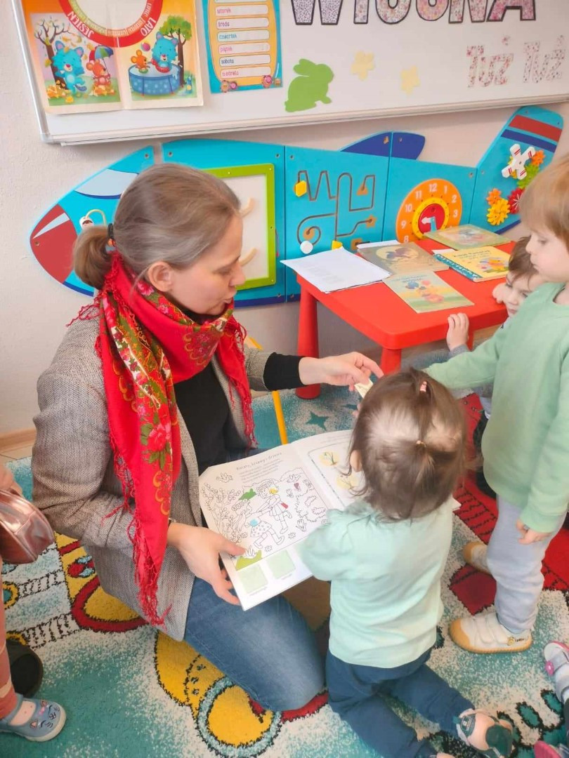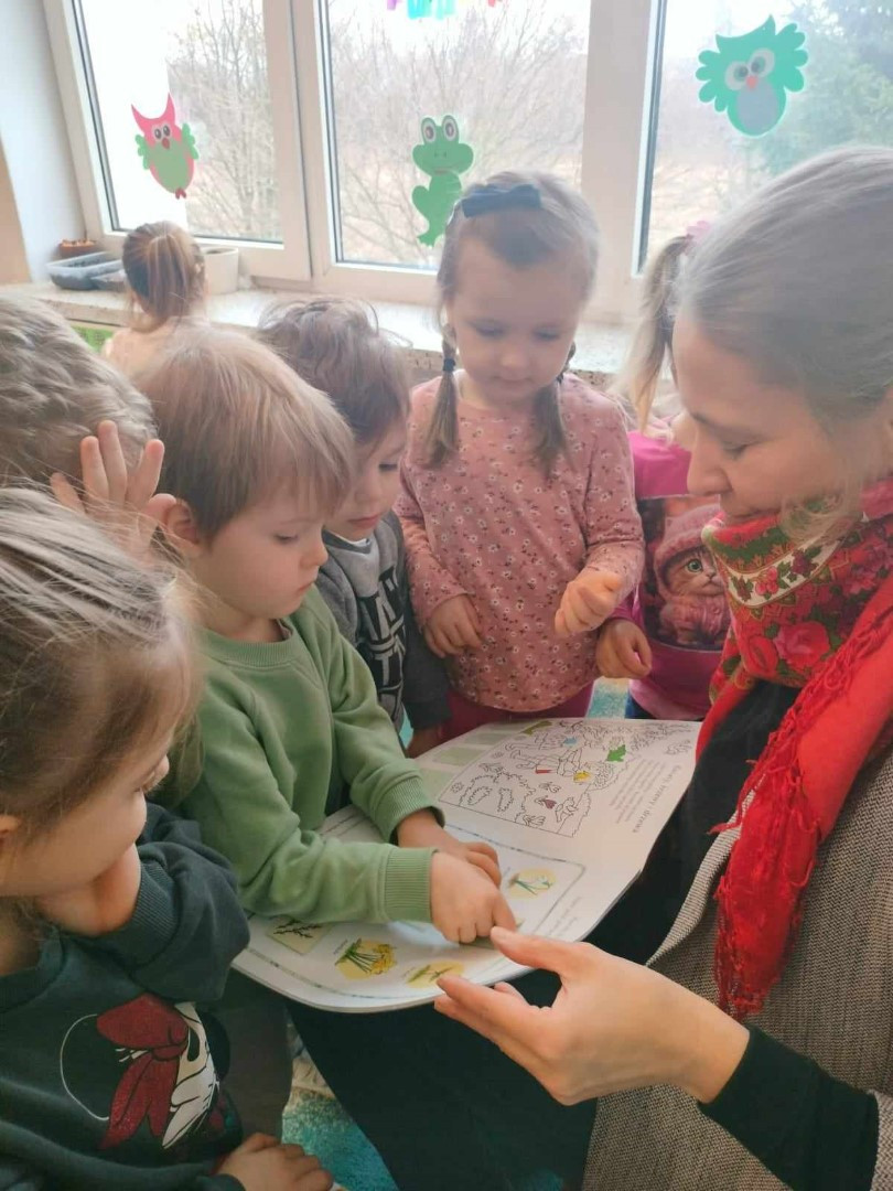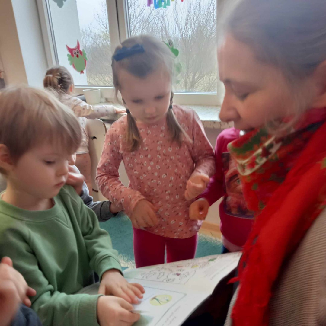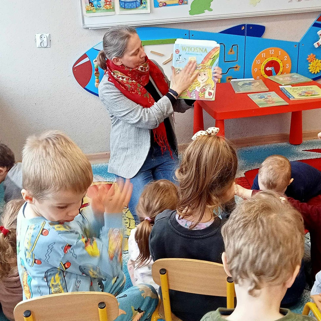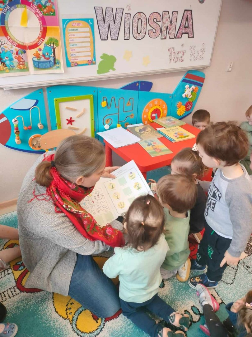 Podczas spotkania milusińscy mogli zapoznać się z „wiosennymi książeczkami” udostępnionymi do wypożyczenia.