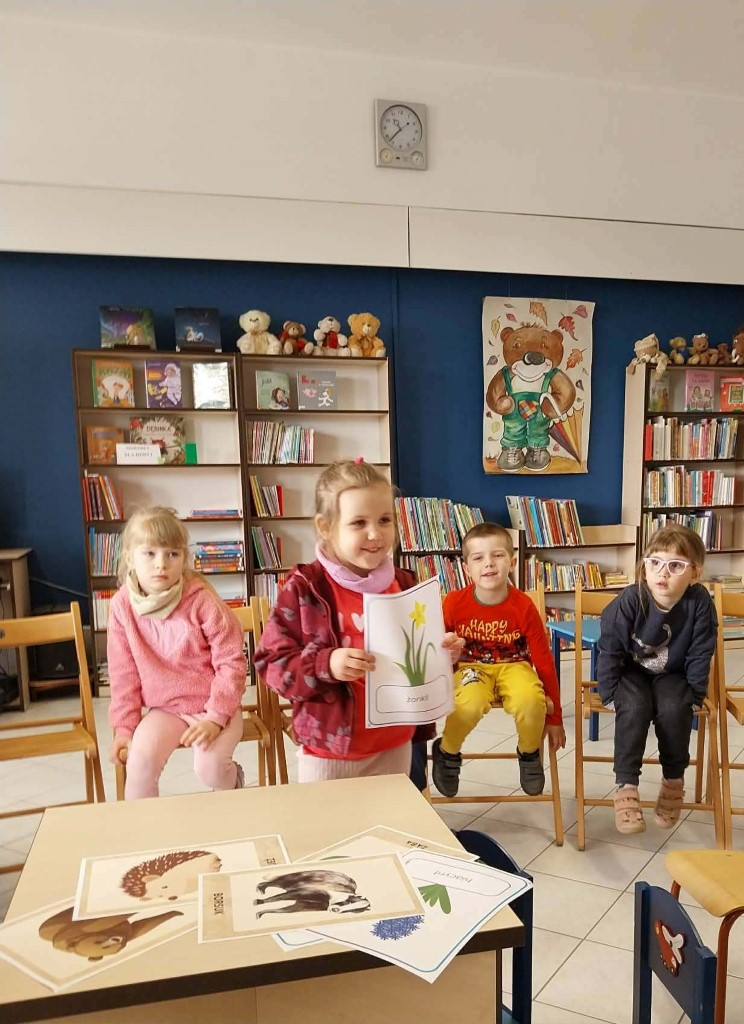 W dniach 18-19 marca do Filii nr 2 z grupami „Słoneczka”,” Biedronki” oraz „Sowy” z Przedszkola Publicznego nr 4 zawitała już wiosna. Prowadząca spotkanie rozmawiała z dziećmi o pierwszych zwiastunach tej pięknej pory roku. Wspomniała o zwierzątkach budzących się ze snu zimowego i ptakach powracających z ciepłych krajów. Przedszkolaki doskonale rozpoznawały pierwsze wiosenne kwiaty. Dzieci wysłuchały książki pt. „Wiosna” z serii Hulajnoga Zuzia Karoliny Górskiej. Na koniec świetnie poradziły sobie z zagadkami dotyczącymi nadchodzącej pory roku. Dziękujemy za spotkanie i zapraszamy na kolejne.