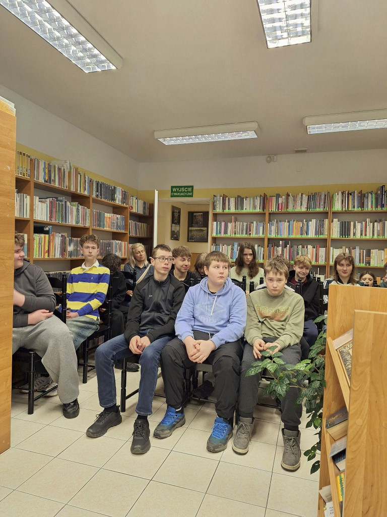 10 kwietnia w naszej bibliotece odbyło się spotkanie, mające na celu promocję czytelnictwa wśród młodzieży. Uczestniczyła w nim klasa VIII e ze Szkoły Podstawowej nr 2 wraz z wychowawczynią Alicją Majewską. Spotkanie zostało zainicjowane przez uczestników Dyskusyjnego Klubu Książki dla dzieci i młodzieży, który działa w naszej placówce od 2022 roku. Uczniowie zapoznali się z księgozbiorem adresowanym dla młodzieży, który zaprezentowała jedna z uczennic , aktywnie uczestnicząca w spotkaniach DKK od początku jego działania. Ważnym punktem była prezentacja książki pt. „Szkolne lifehacki” autorstwa Lesława Dzika – popularnego youtubera i tiktokera. Ta motywująca książka zawiera wiele pomocnych porad i trików pomagających w uczeniu się, a także rozwijaniu swoich pasji. Serdecznie zachęcamy wszystkich uczniów do zapoznania się z treścią książki i wdrażania szkolnych lifehacków.