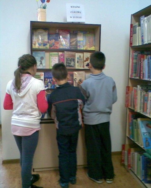 Książki wybrane są z księgozbioru bibliotecznego z różnych dziedzin literatury pięknej dla dzieci i dorosłych. Również w literaturze popularno-naukowej zawarte są liczby, które informują np. o ilości haseł.