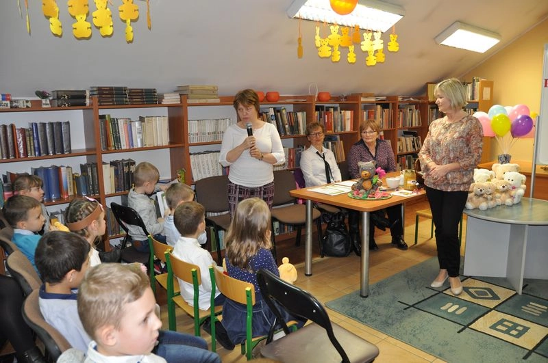 Spotkanie rozpoczęła dyrektor biblioteki Danuta Panas, która przywitała wszystkich przybyłych na „misiowe urodziny”.